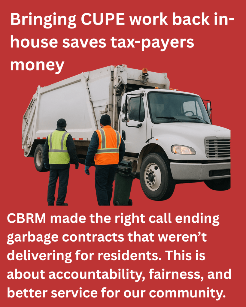 First, this move shows that the municipality is taking seriously its responsibility to ensure that waste management, the basic service of collecting garbage and keeping our streets clean, is done in a way that works for everyone. When contracts no longer deliver value, whether due to cost, performance, or changing circumstances, it is wise to reassess and act. CBRM’s decision signals that the community comes first.